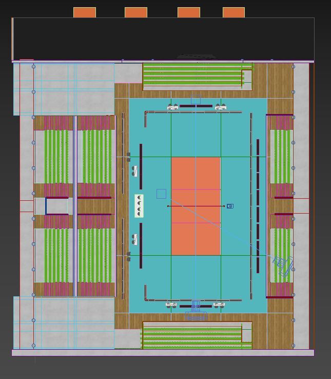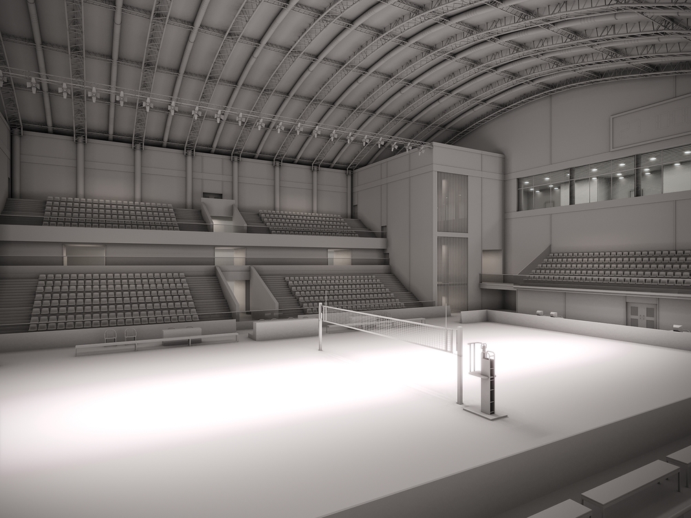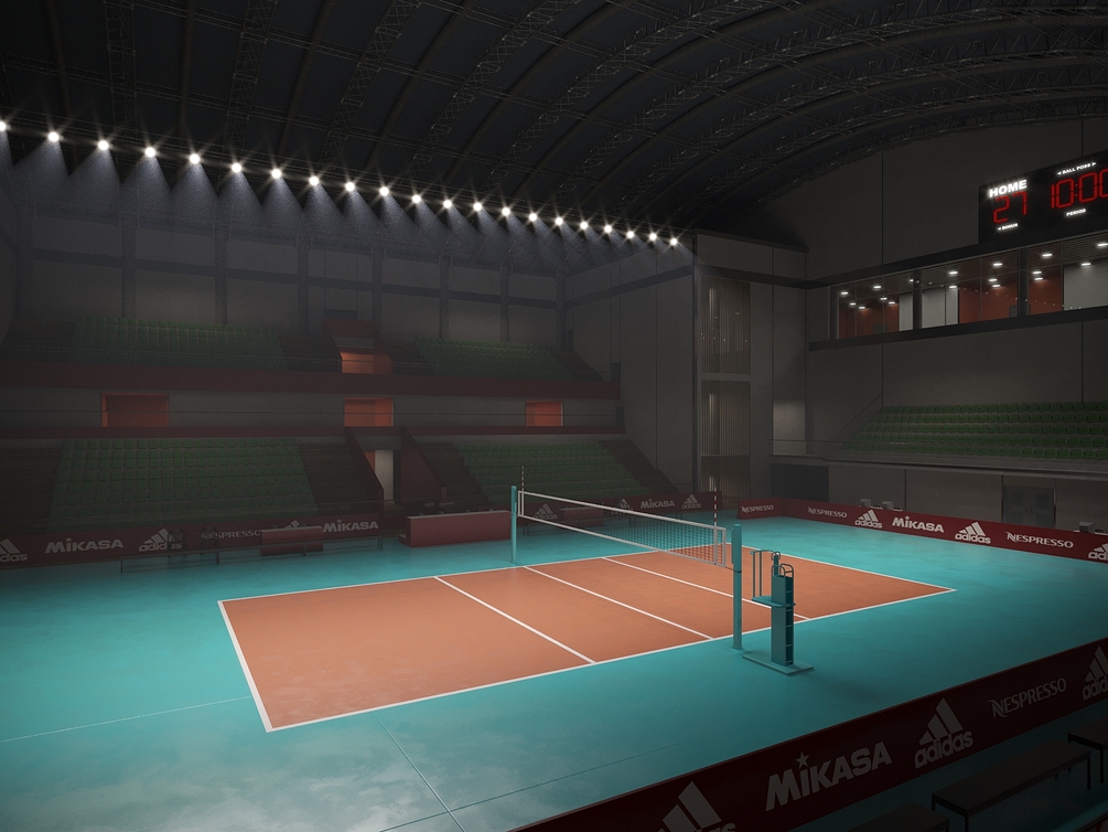 This is a fully textured interior scene of a volleyball court pavilion, ready to render with Corona for 3d Max. Ready for close-ups